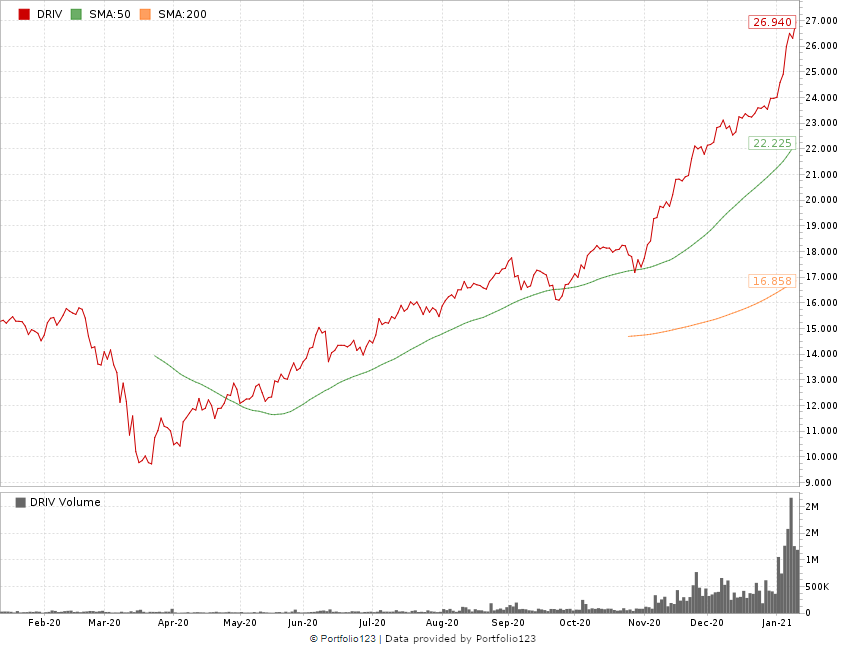 Just look at the Global X Autonomous & Electric Vehicle ETF (Nasdaq: DRIV).