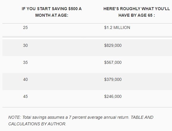 Essentially, saving about $500 per month over a 40-year period equates to $240,000 out of pocket. You will wind up with five times that amount after applying a 7 percent average annual return.