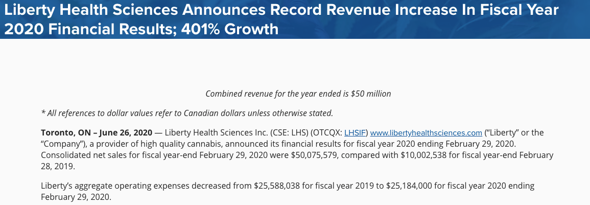 — Liberty Health Sciences (@LibertyHSInc) October 10, 2020