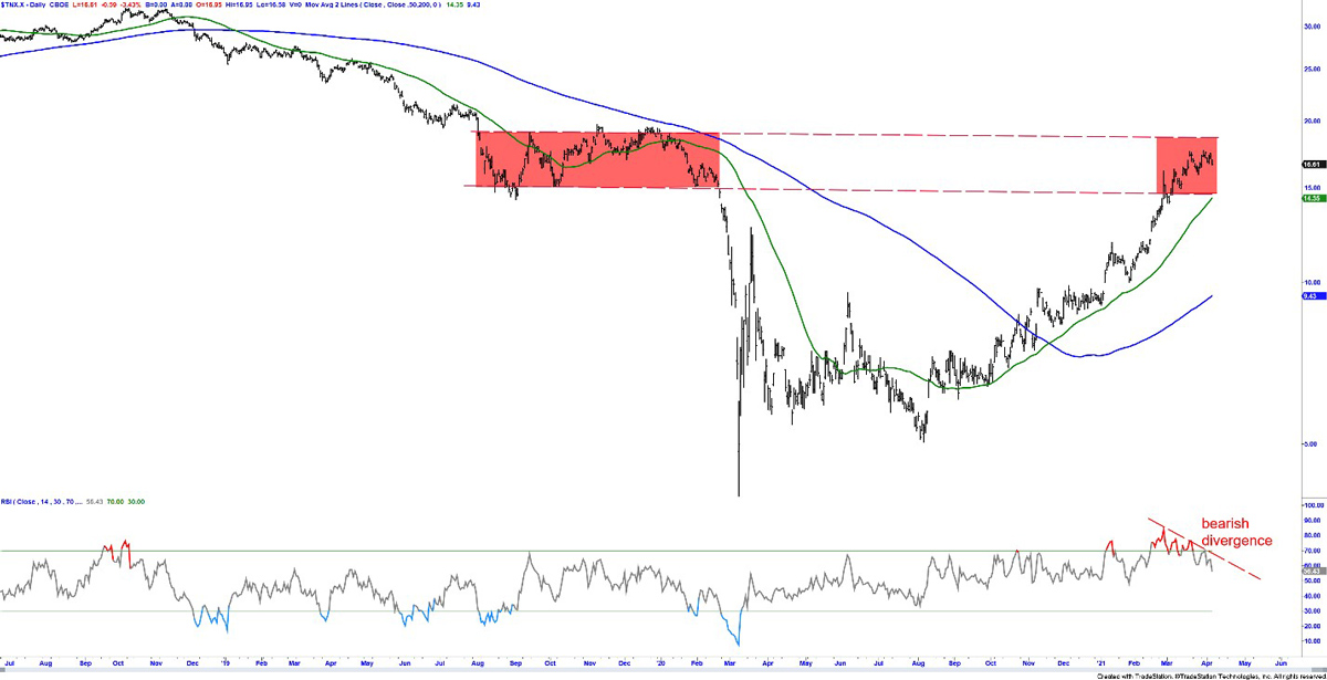For one, the 10-year rate has far exceeded both its 50-day and 200-day moving averages. It’s “stretched,” we say.