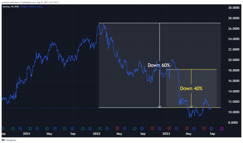 Being a small regional bank, there are a multitude of reasons why KEY has faced pressure in 2023. The banking panic that erupted earlier this year threw a spotlight on stocks just like this one.